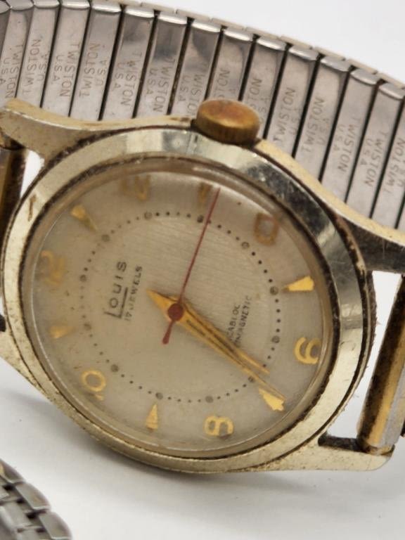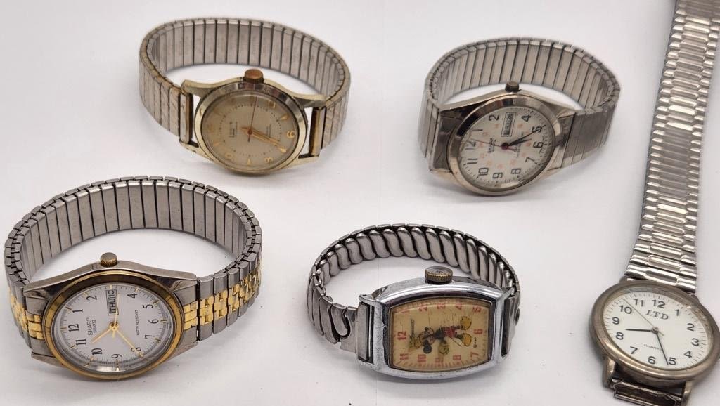 STRETCHY BANDS: AHRM DAY DATE-SHARP WR DAY DATE-LOUIS 17 JEWELS-INGERSOLL MICKEY MOUSE-LTD-ALL WATCHES UNTESTED/PARTS/REPAIR