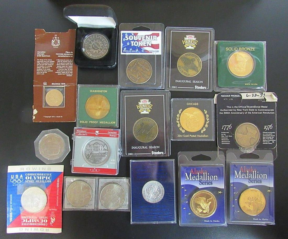 SOUVENIR TOKENS / ANNIVERSARY COINS / COMMEMORATIVE ROUNDS & MORE – ALL DIFFERENT – BIG VARIETY – (17) PIECES