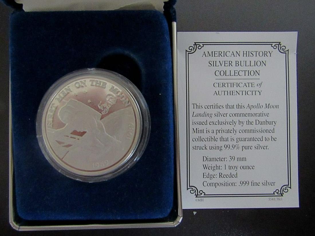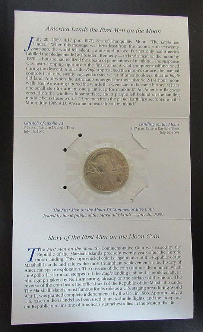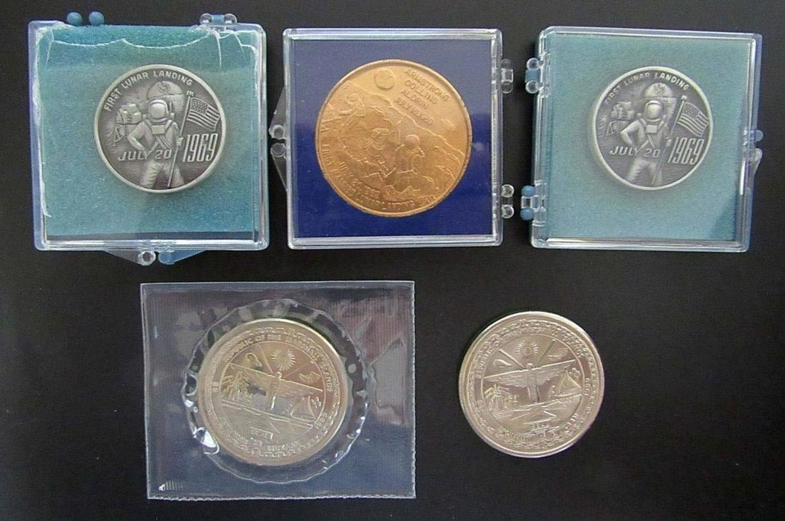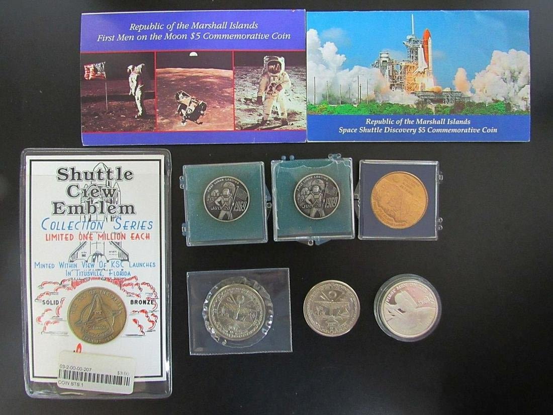 (4) 1989 FIRST MEN ON THE MOON, (2) 1969 FIRST LUNAR LANDING, 1989 PROOF .999 SILVER FIRST MEN ON THE MOON, 1981 COLUMBIA THE GEM OF THE GALAXY
