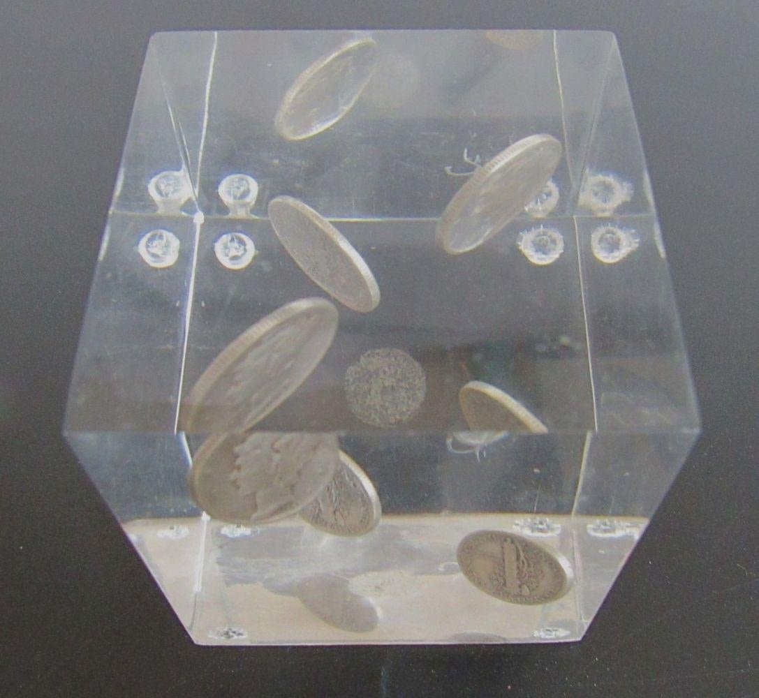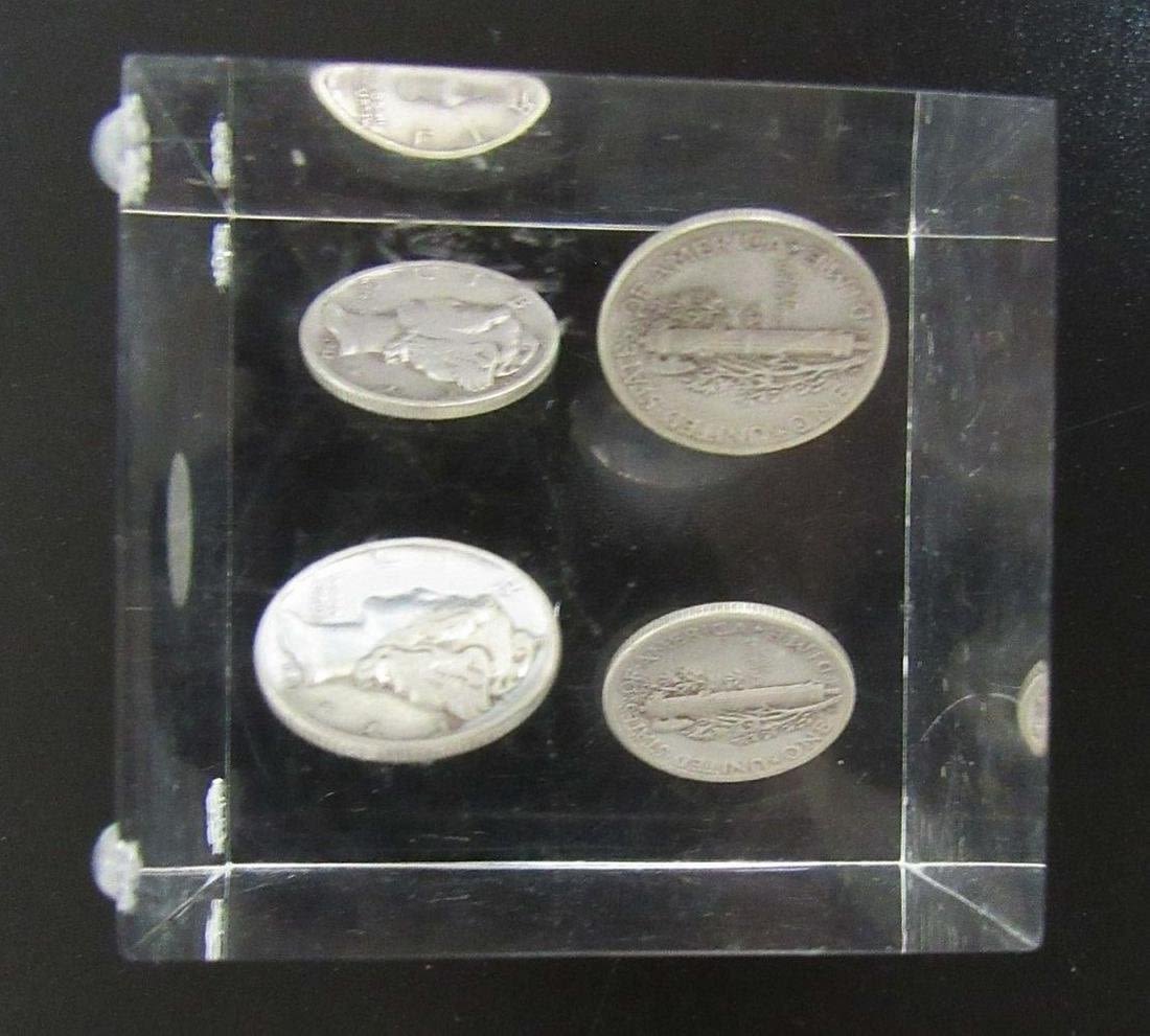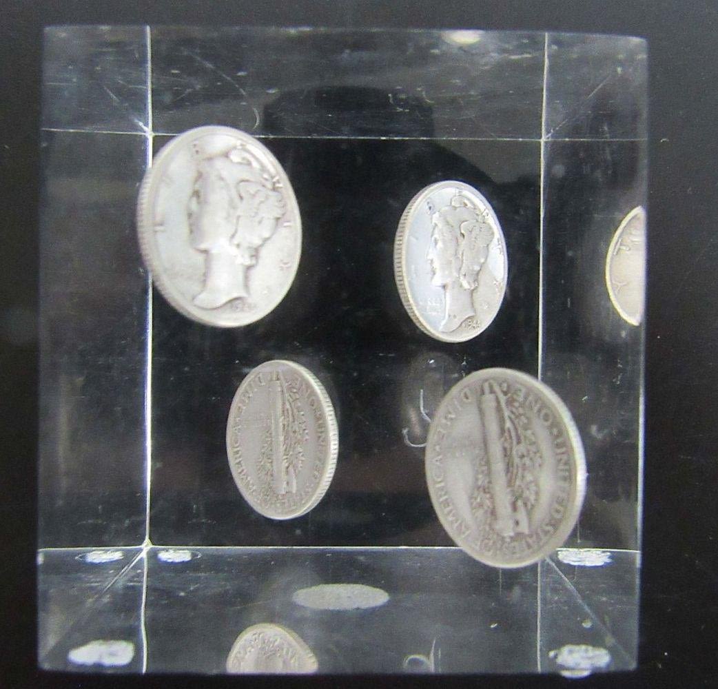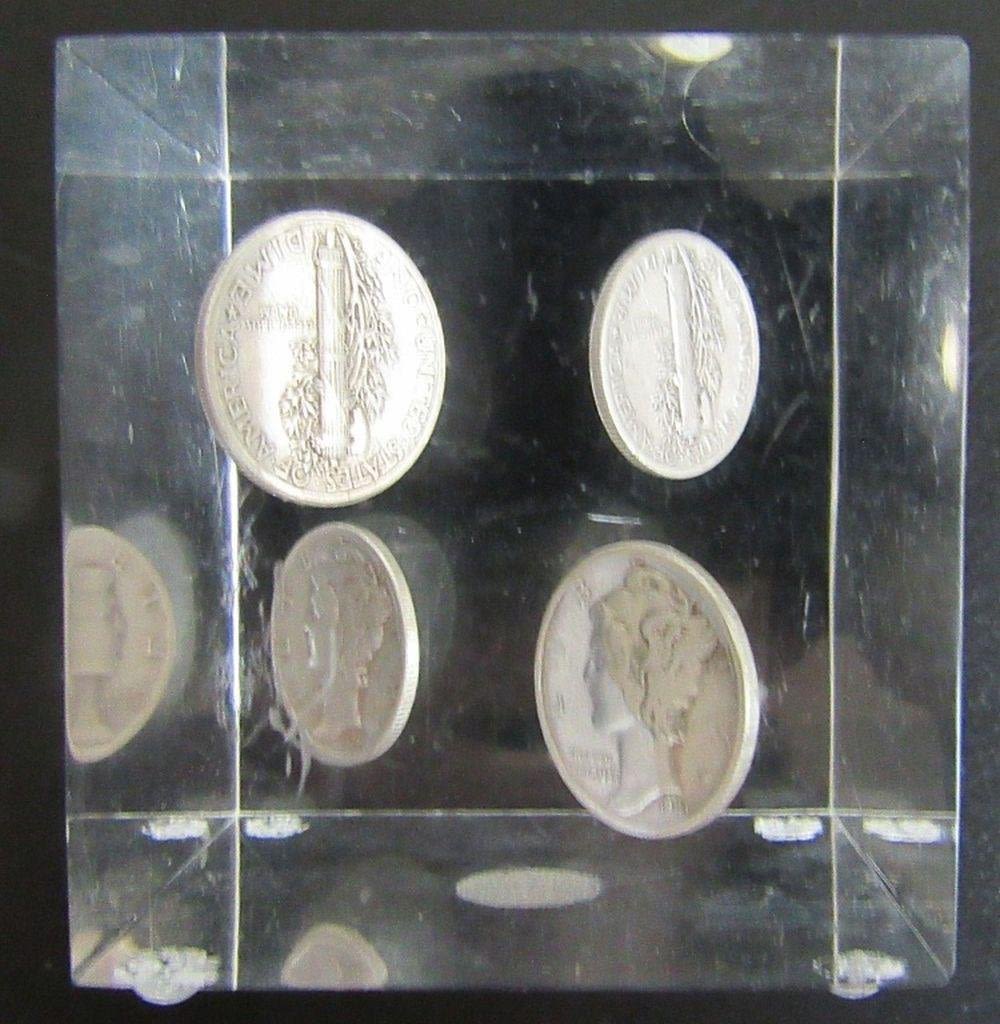 (4) SILVER DIMES in ACRYLIC PAPERWEIGHT