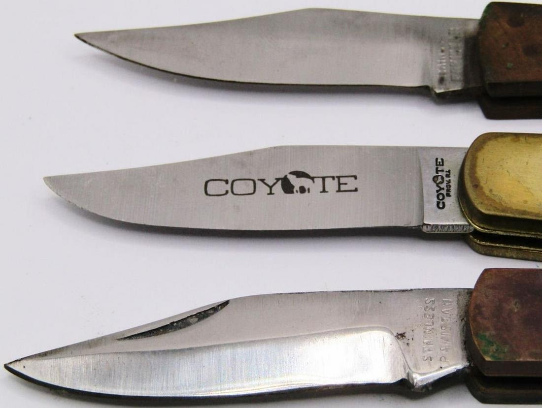 Coyote USA Green Lockback Knife – Prov RI with Sheath; 2 Stainless Pakistan Lockback Pocketknives with Sheaths!