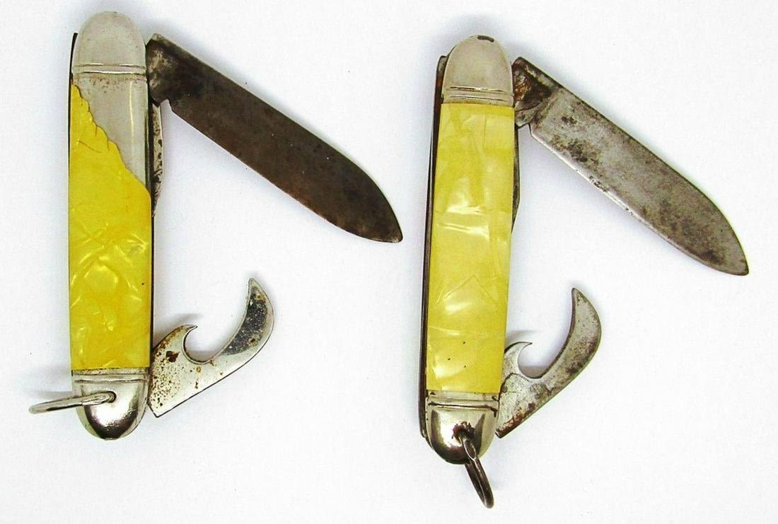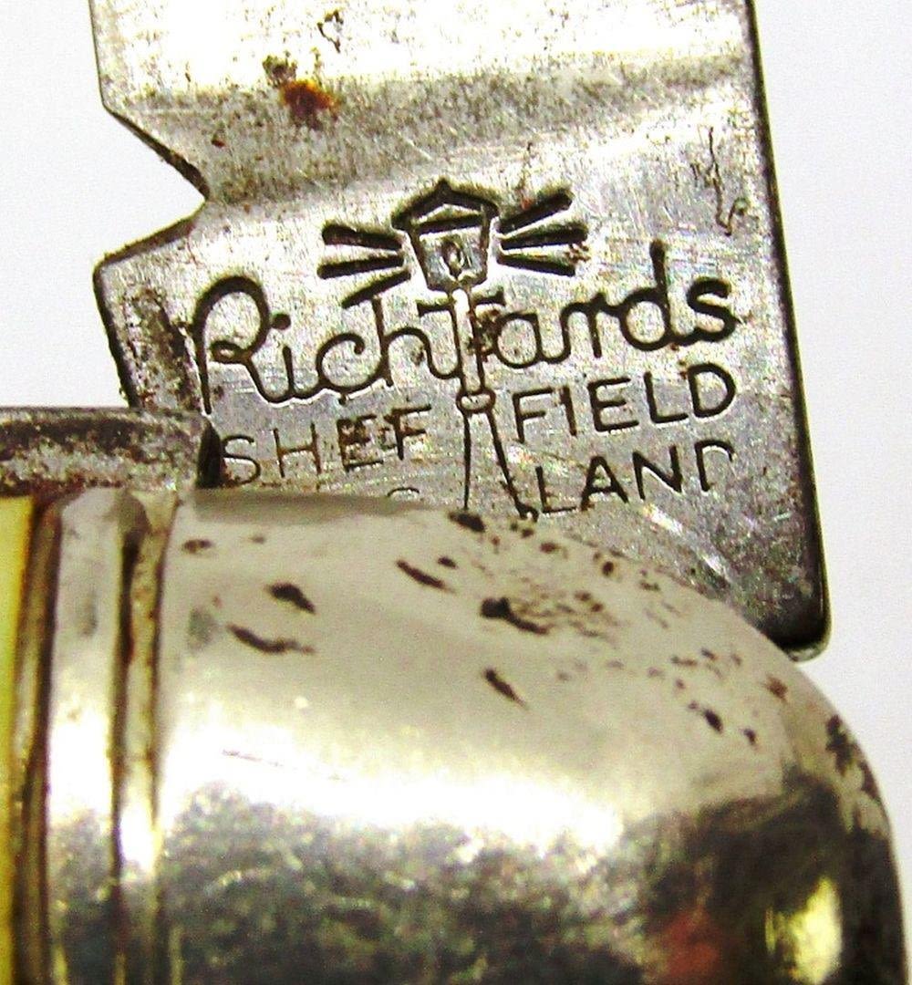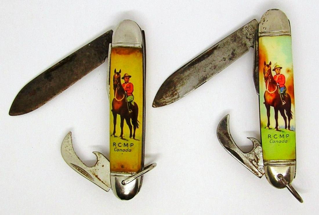 Royal Canadian Mounted Police Richards Sheffield England Folding Pocket Knives; Back Section from 1 Knife is Slightly Chipped (See Photos).