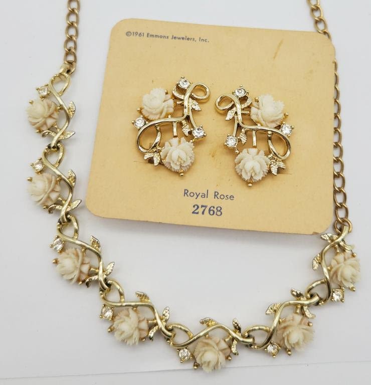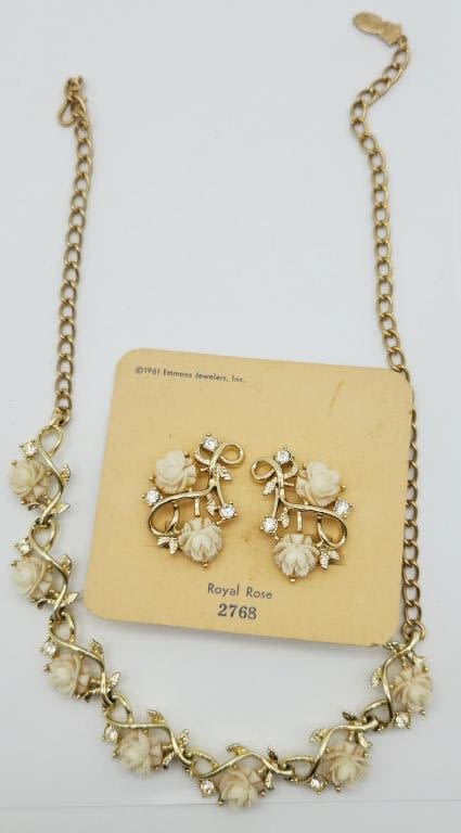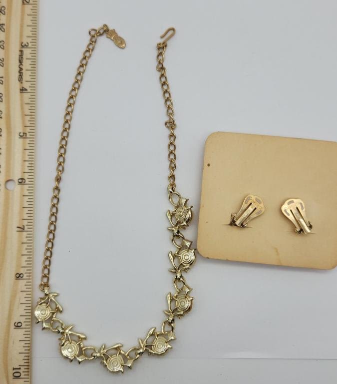 NECKLACE WITH RHINESTONE ACCENTS PLUS MATCHING PAIR OF CLIP ON EARRINGS