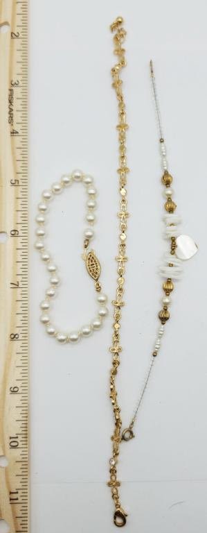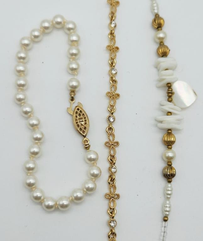 FAUX PEARLS-PUKA SHELL-RHINESTONES