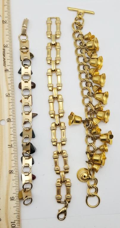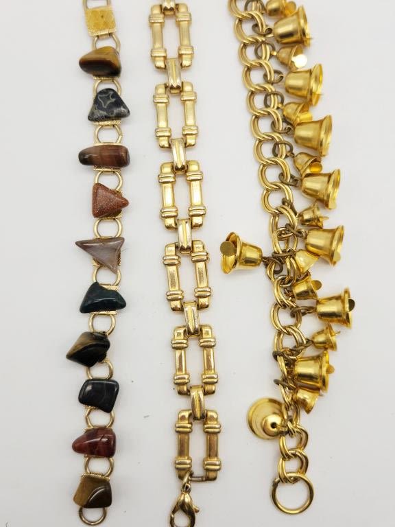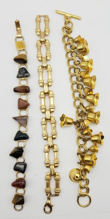 NATURAL POLISHED STONES (1)LINKED (1)BELL CHARM BRACELET