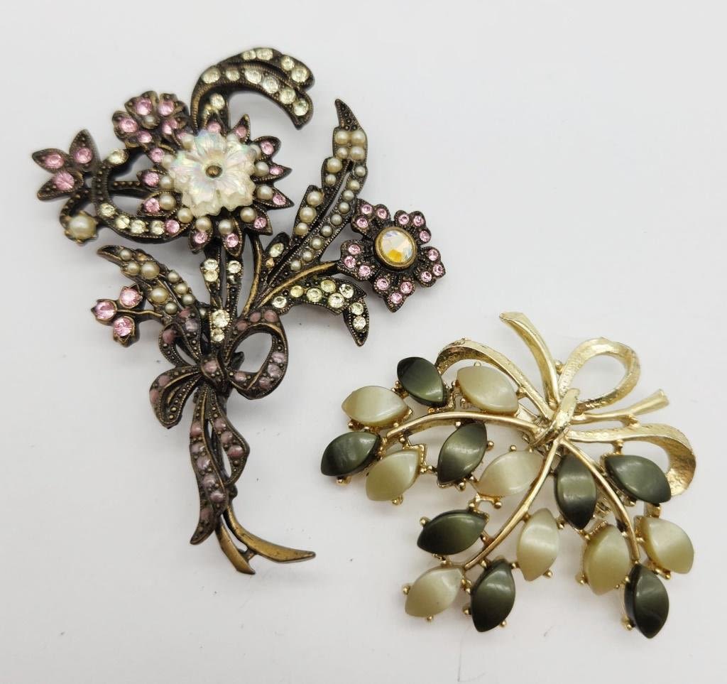 ROMANCE WITH RHINESTONES LUCITE & FAUX PEARLS PLUS (1)W/ GREEN LUCITE ACCENTS