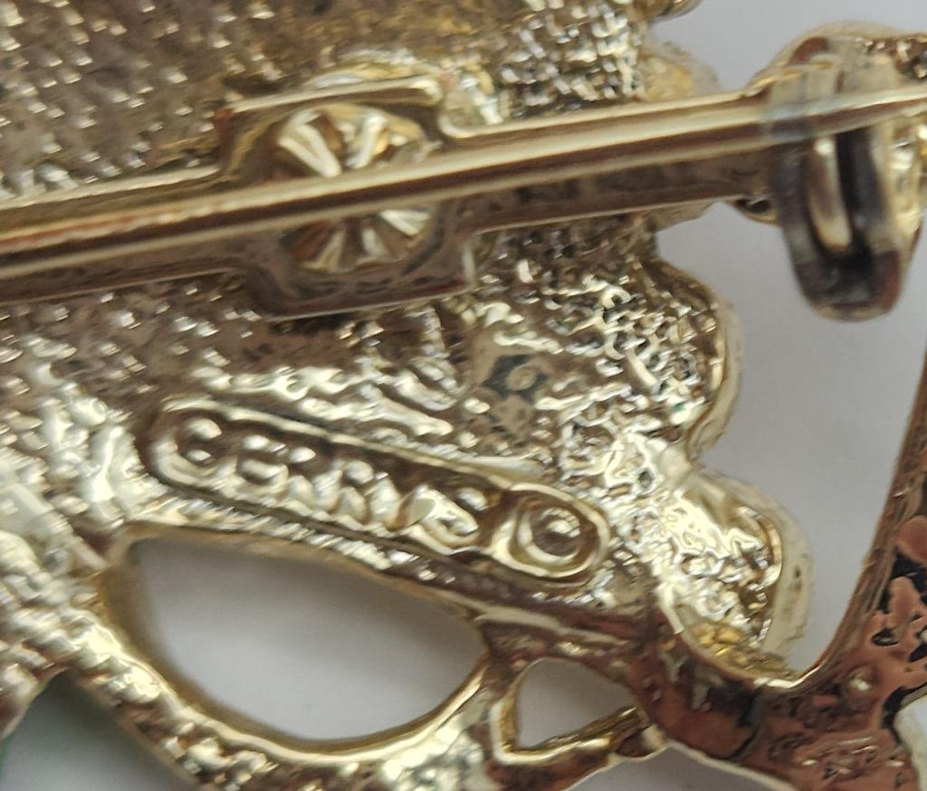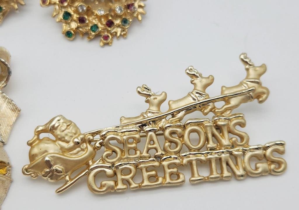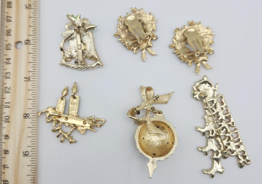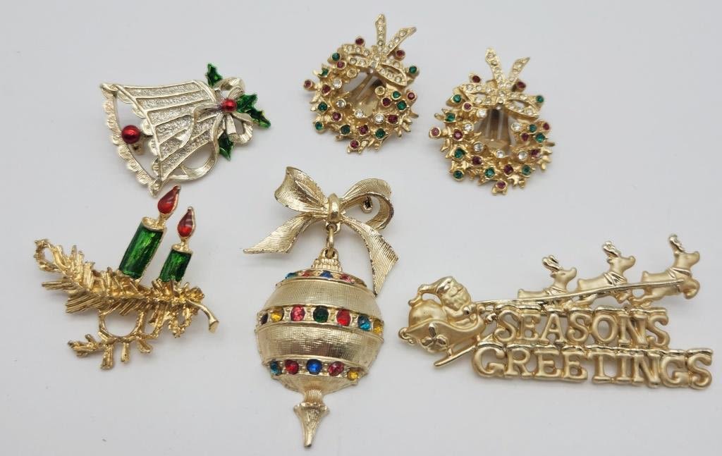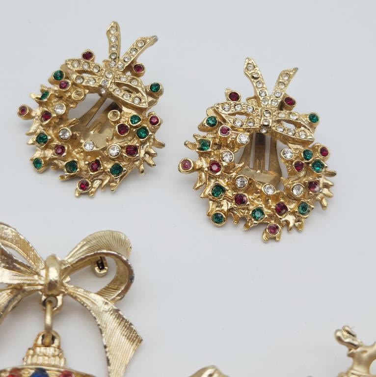(4)BROOCHES & (1)PAIR OF CLIP ON EARRINGS-RHINESTONES ENAMEL