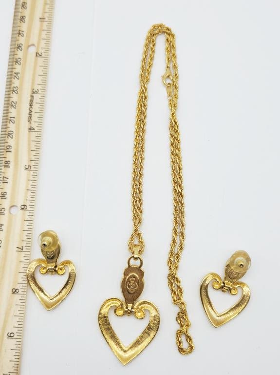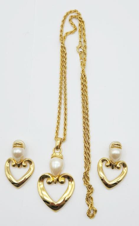 HEART PENDANT & LARGE CREME LUCITE ACCENT WITH MATCHING PAIR OF PIERCED DANGLY EARRINGS