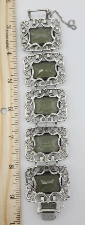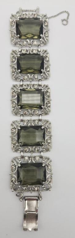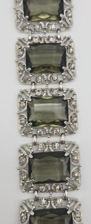 LARGE GRAY RECTANGLE RHINESTONE & CLEAR RHINESTONE ACCENTS