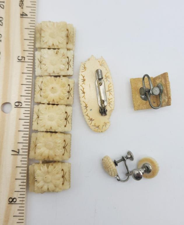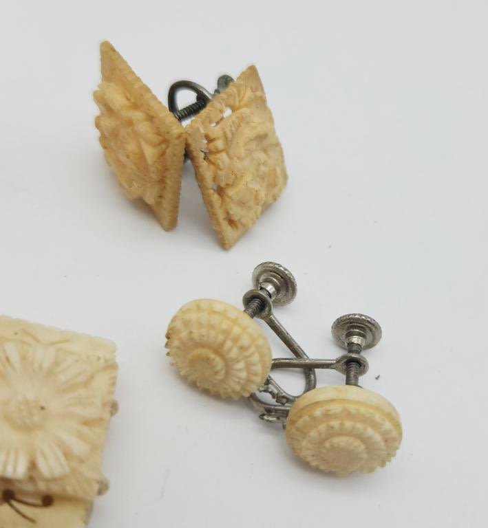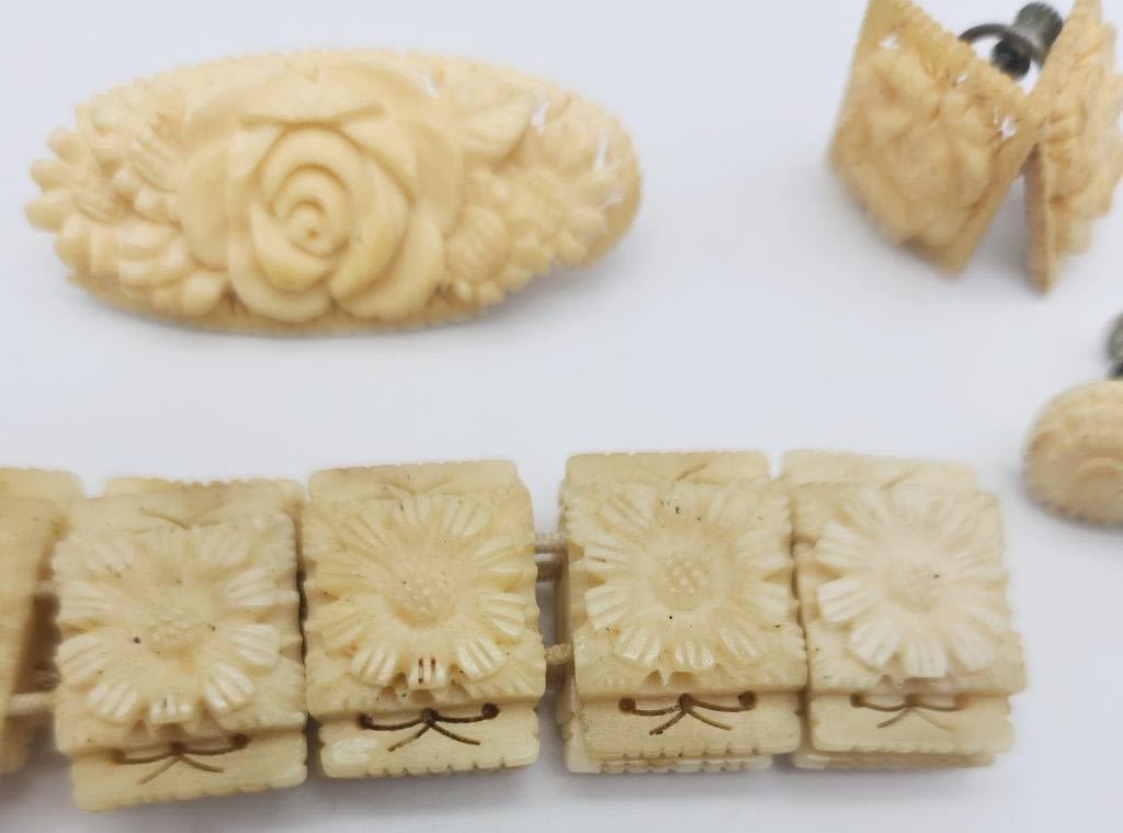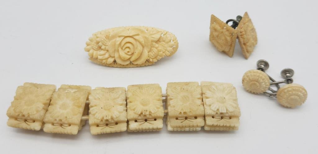 (1)PANEL BRACELET (1)BROOCH (2)PAIRS OF TWIST BACK EARRINGS