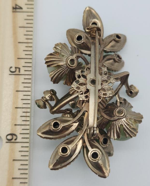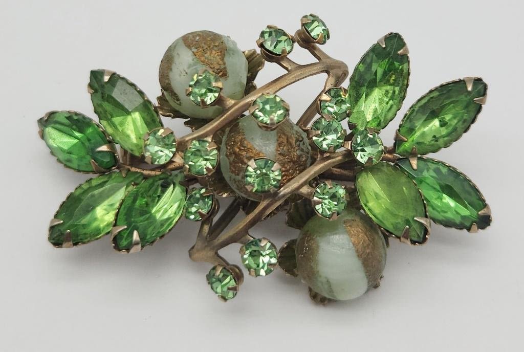 GREEN RHINESTONES AND MARBLE LUCITE BEAD ACCENTS