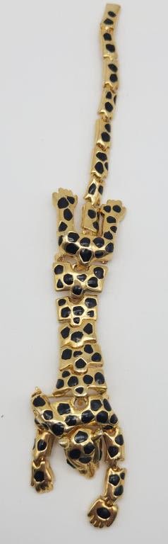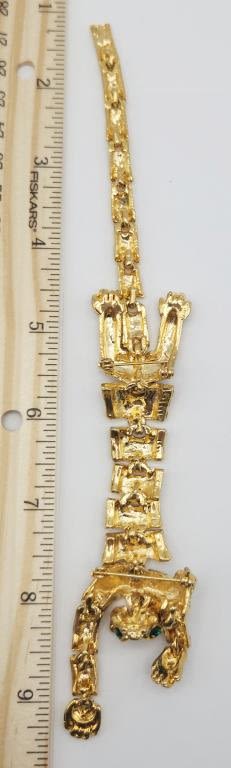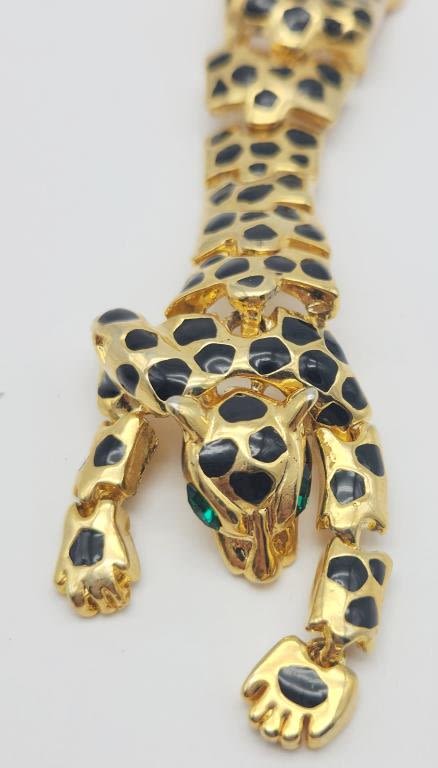 BLACK ENAMEL AND EMRALD GREEN RHINESTONE EYES