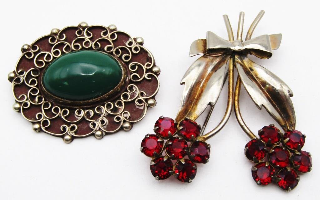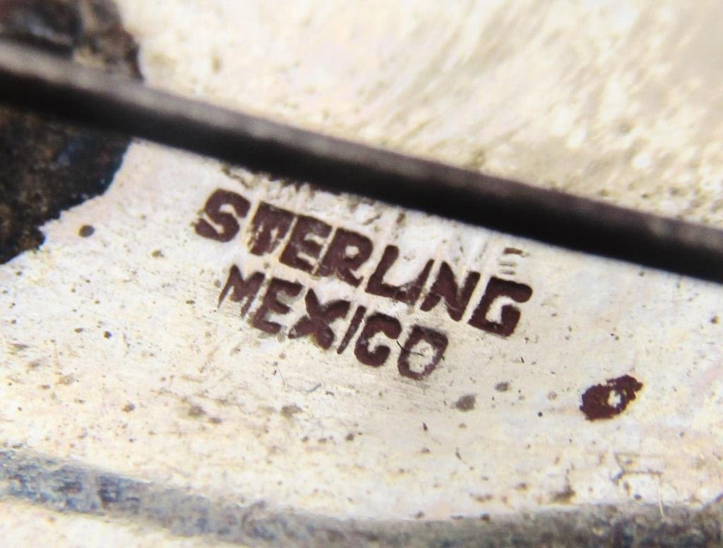 MEXICO w/LARGE GREEN STONE, FLORAL w/RED CUT GLASS ( 17 DWT)
