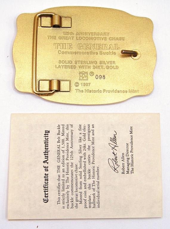 125th ANNIVERSARY THE GREAT LOCOMOTIVE CHASE SOLID STERLING SILVER LAYERED WITH 24KT GOLD – 1987 THE HISTORIC PROVIDENSE MINT in ORIGINAL BOX / COA (106 DWT)