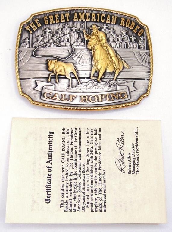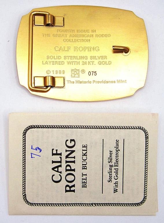 125th ANNIVERSARY THE GREAT AMERICAN RODEO CALF ROPING SOLID STERLING SILVER LAYERED WITH 24KT GOLD – 1988 THE HISTORIC PROVIDENSE MINT in ORIGINAL BOX / COA (108 DWT)