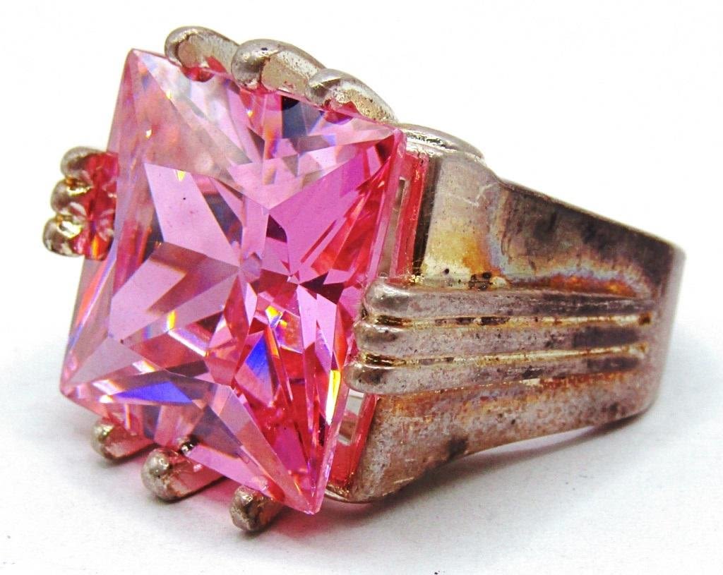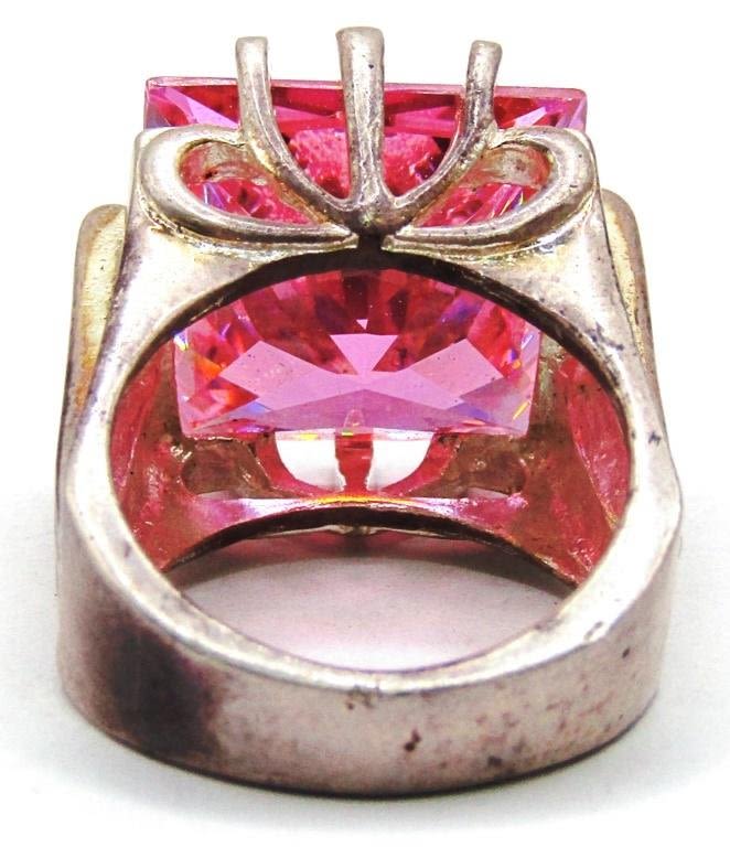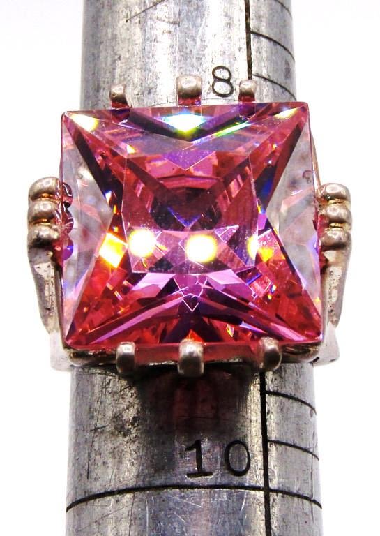 Size 9 ring with a large square cut pink stone (15.4 dwt)