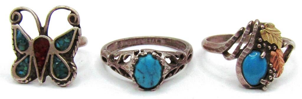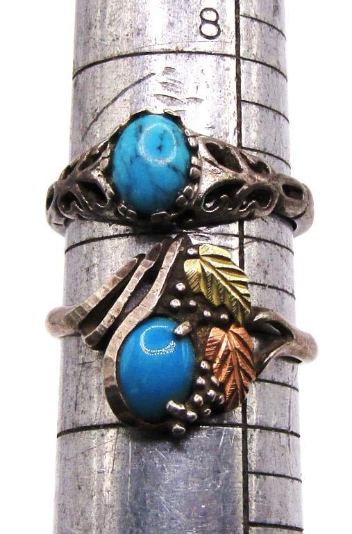 Unique vintage rings sizes 3-10. Two rings with turquoise stones and one with turquoise and coral. (7 dwt)
