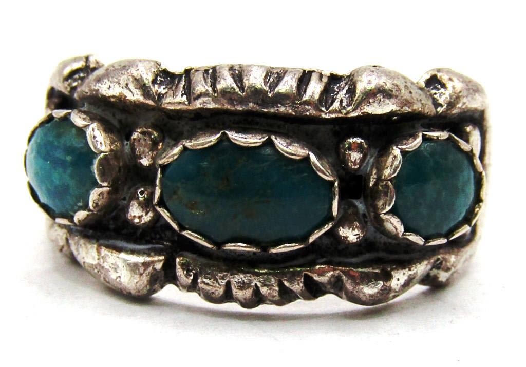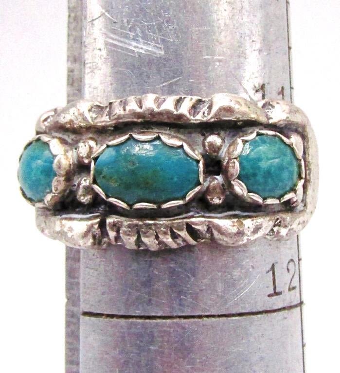 Beautiful Sterling ring with three pieces of turquoise set in the center. Size 11. (5dwt)
