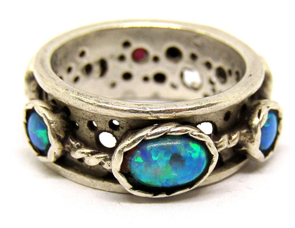 Four beautiful sterling rings, sizes 6-9. Includes a spinning opalite ring, a ring with a pale yellow gemstone, possibly citrine, and a ring with a light green tourmaline stone. (12.2 dwt)