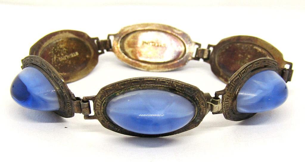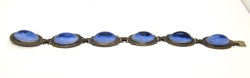 6.5 inch bracelet with six blue stones, potentially lucite. Working clasp as well. (13 dwt)