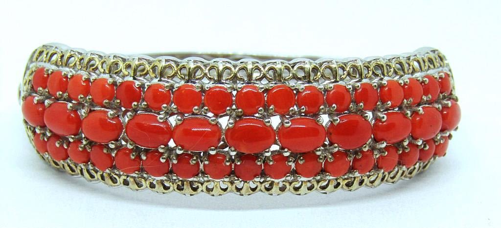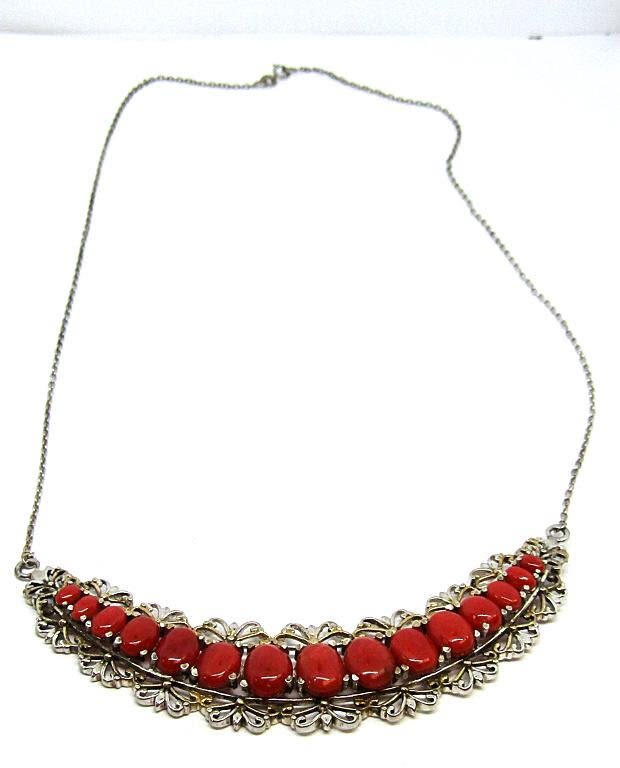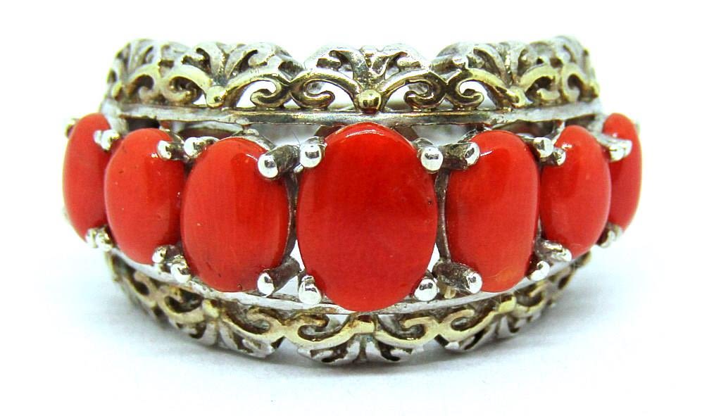 Includes one necklace (20 in), one bracelet (8 in), and one 7.5 sized ring, each with multiple stunning coral stones. (37 dwt)
