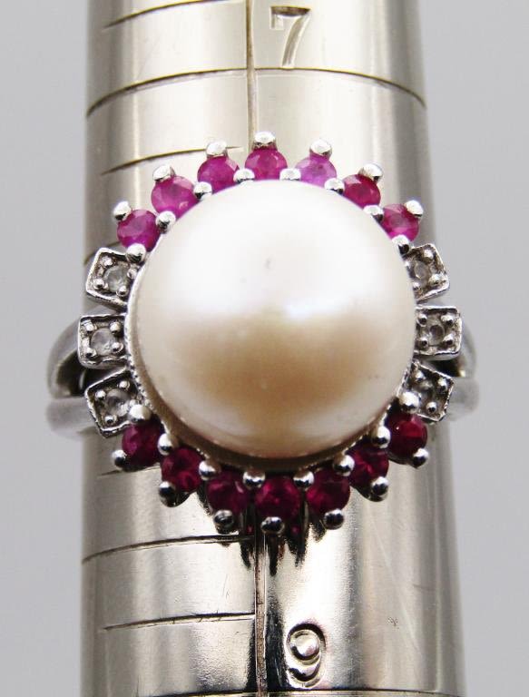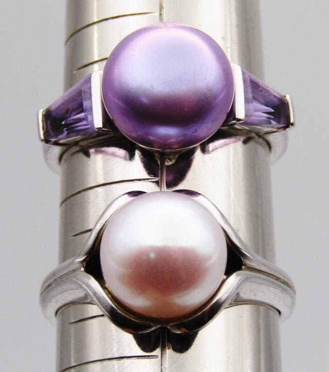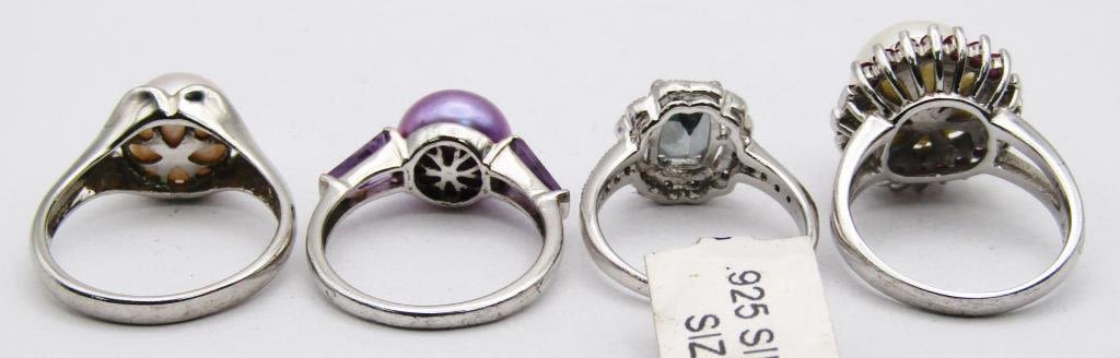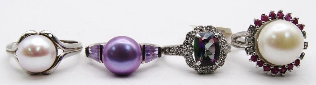 (1) with TAG RAINBOW COLORED STONE SIZE 7; (3) with CULTURED PEARLS SIZES 8-9 (13 DWT)