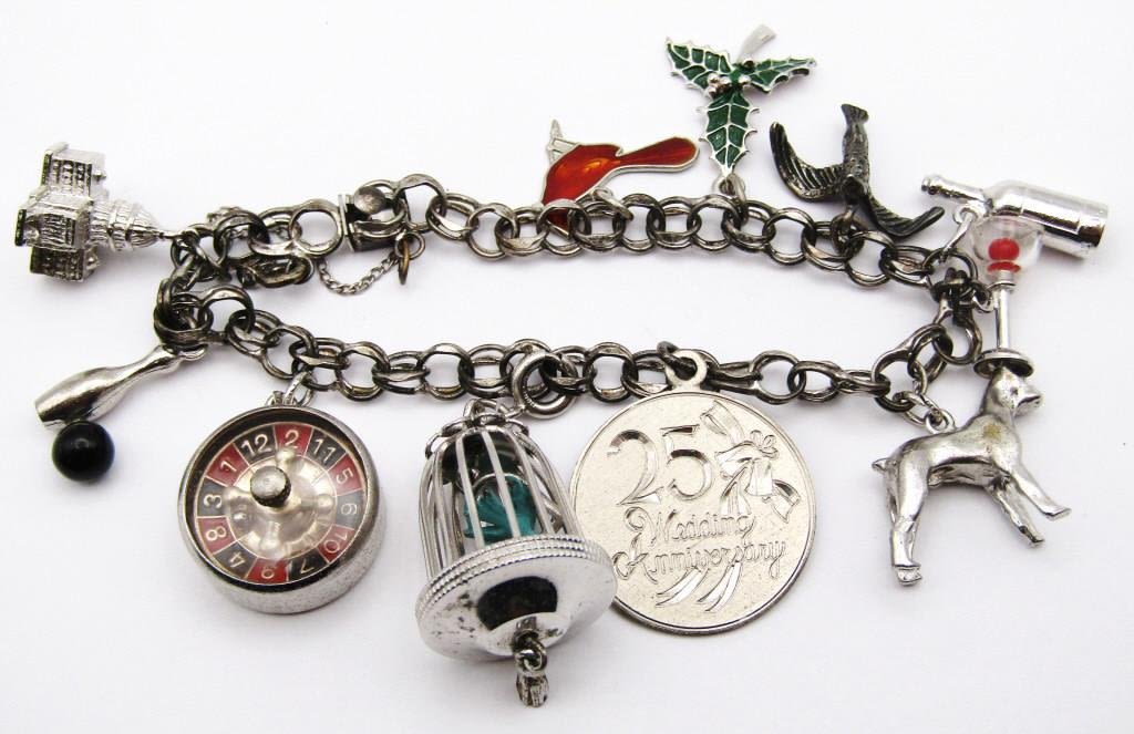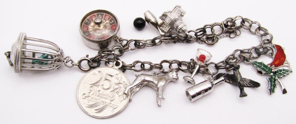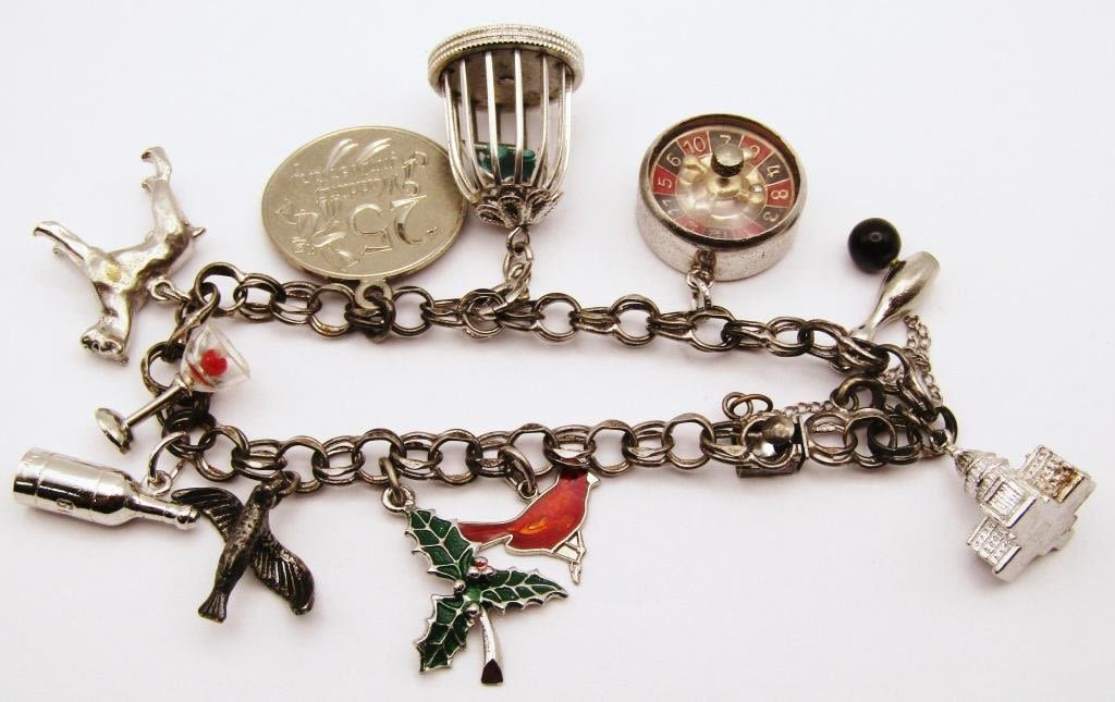 ROULETTE CHARM is STERLING & WORKS – (6) CHARMS NOT STERLING – BRACELET STERLING (29 DWT)