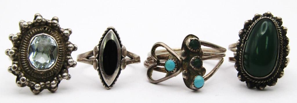 (1) MARKED 950 with JADITE adjustable size, (1) WIRE DESIGN adjustable, (1) BLACK ONYX size 5.5, (1) size 5 – (12 DWT)