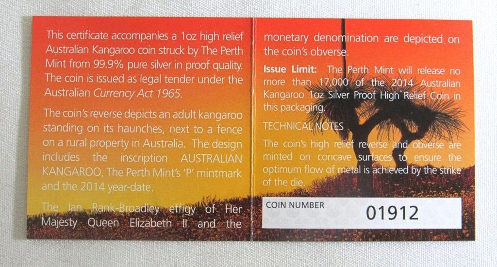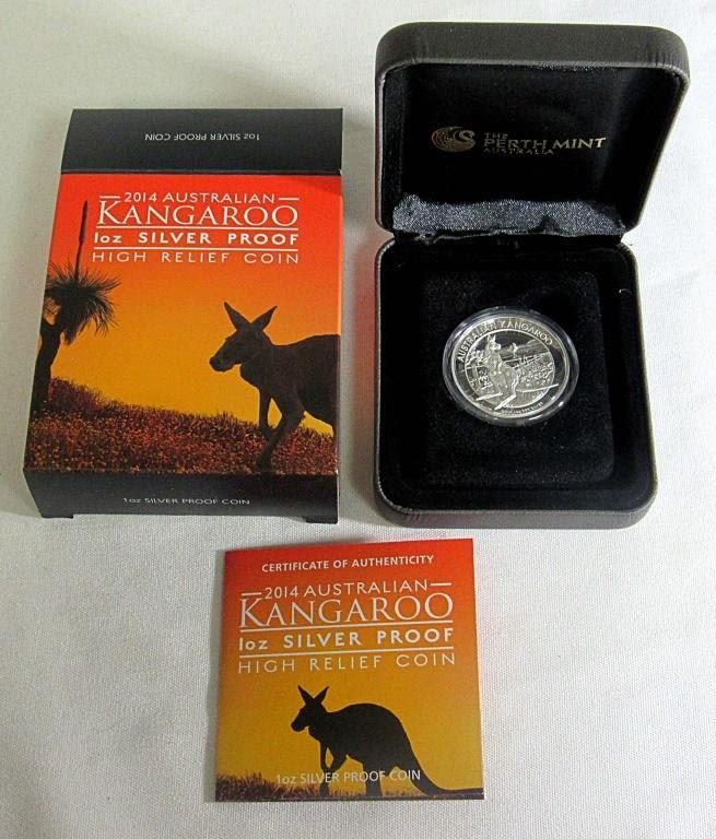 .999 silver Kangaroo coin in original box with Certificate of Authenticity