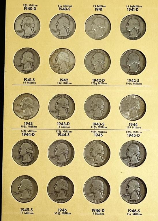 (79) SILVER QUARTERS IN ALBUM – 1932D & 1932S KEY DATES – NICE CIRC or BETTER COLLECTION