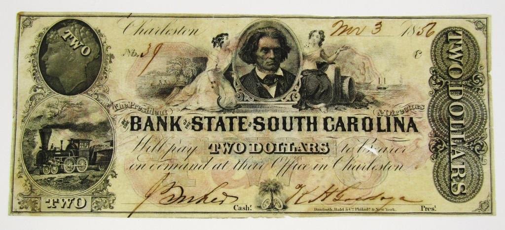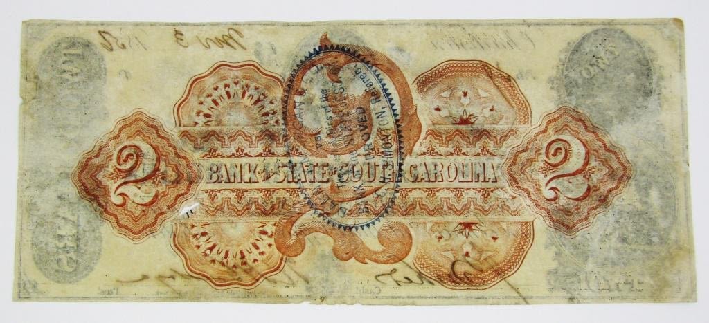 TWO DOLLARS – THE BANK of the STATE of SOUTH CAROLINA