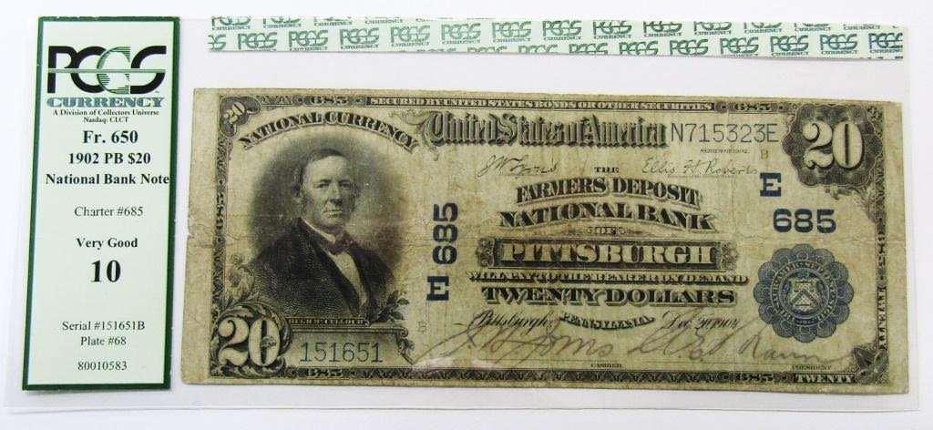 FARMERS DEPOSIT NATIONAL BANK of PITTSBURGH – TWENTY DOLLARS – PCGS 10 VERY GOOD