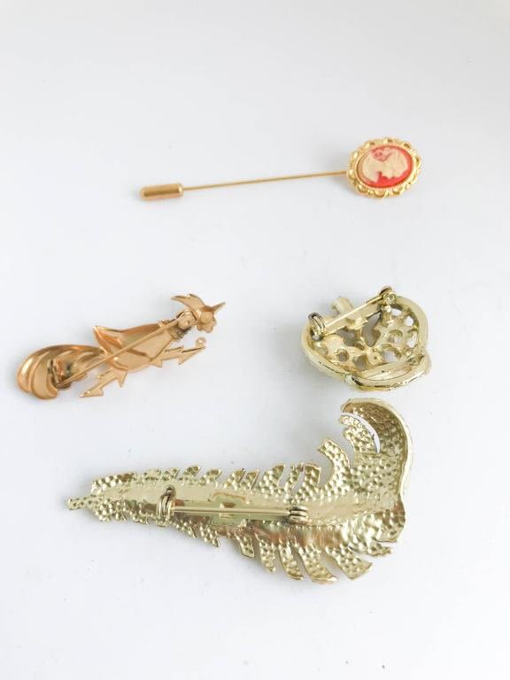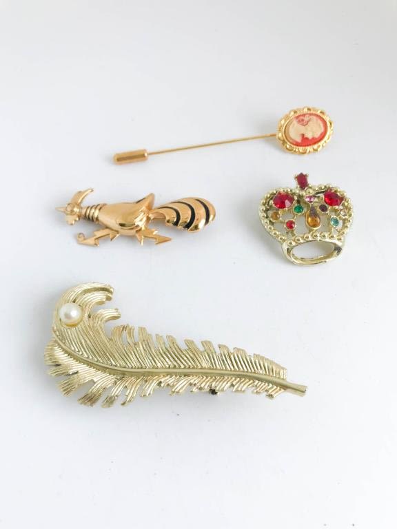 SCROLL, ROOSTER, CROWN + BROOCHES