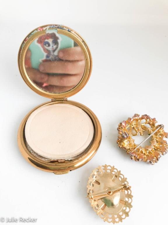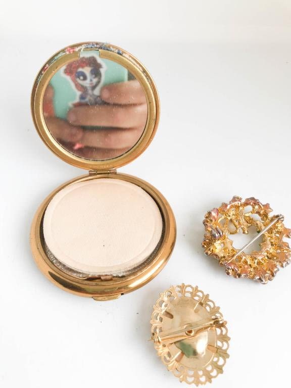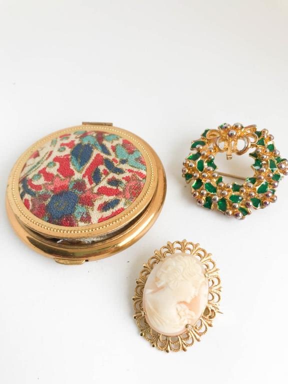 CAMEO BROOCH , GREEN BROOCH, COMPACT