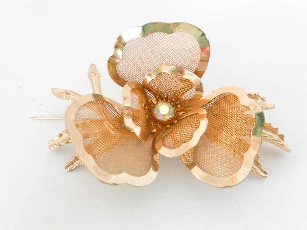 STUNNUNG GOLD TONE FLORAL BROOCH , LARGE