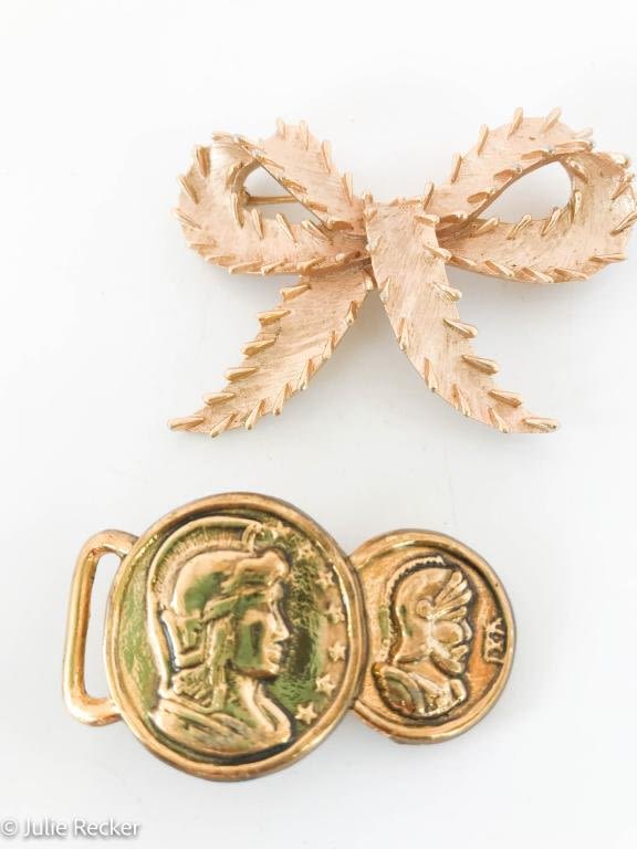 TRIFARI CROWN BOW BROOCH + OTHER CLIP