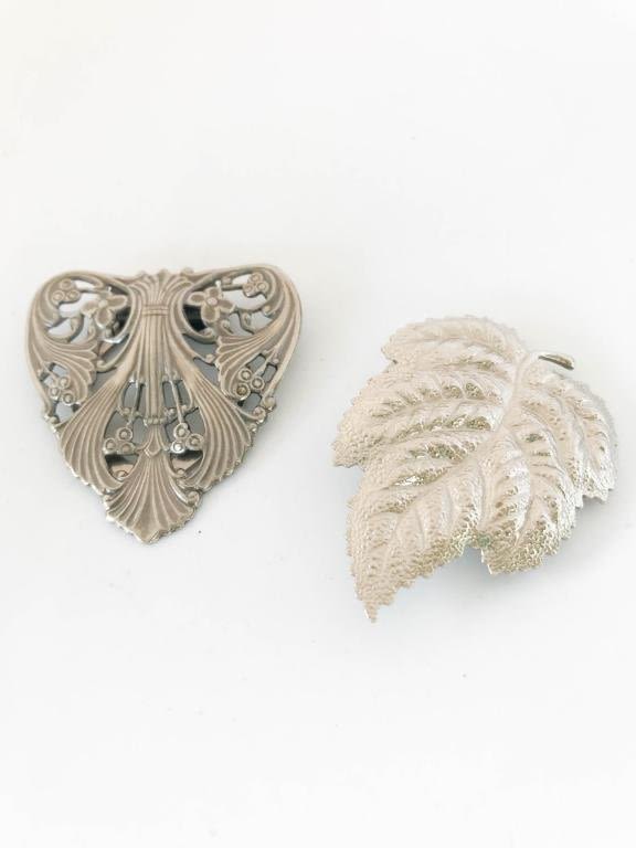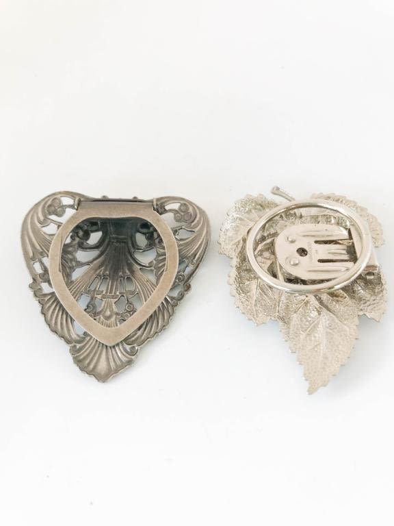 2 SCARF CLIPS, 1 LEAF GERMANY SIGNED + OTHER SCROLLWORK CLIP