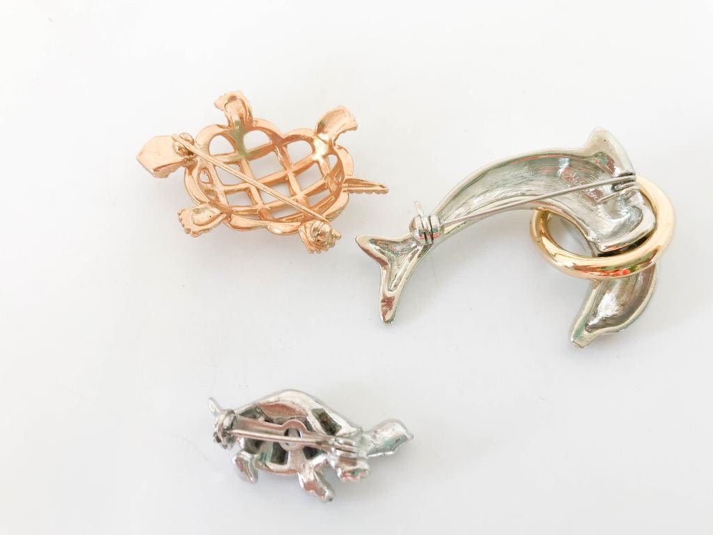 2 TURTLE & 1 DOLPHIN BROOCHES