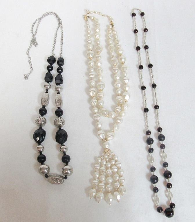 FAUX PEARL, BLACK BEADS, SILVER TONE BEADS