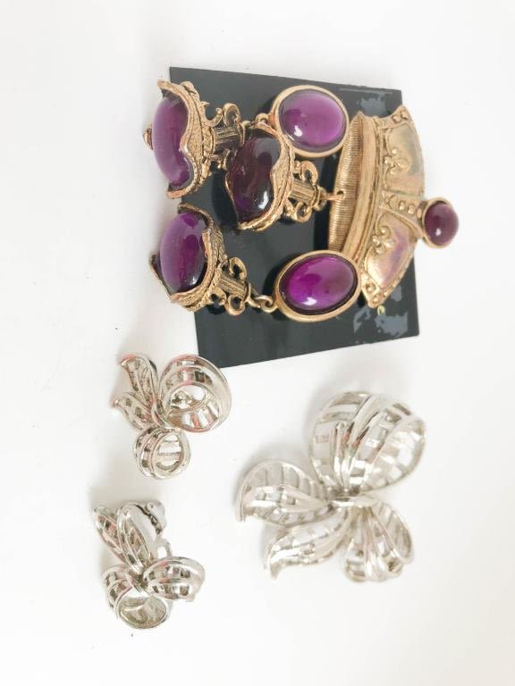 CORO BROOCH , KREMENTZ EARRINGS, ETAGE SET