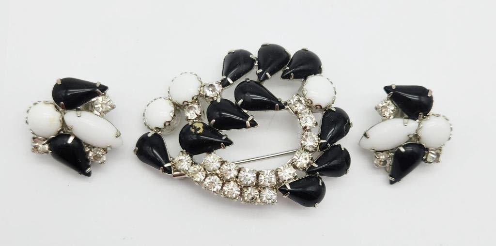 WHITE AND BLACK LUCITE WITH MATCHING PAIR OF CLIP ON EARRINGS
