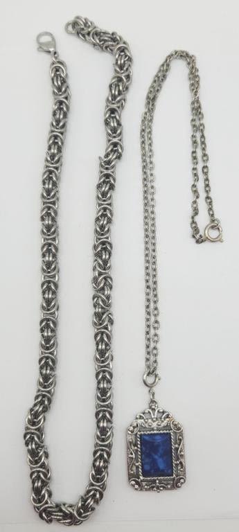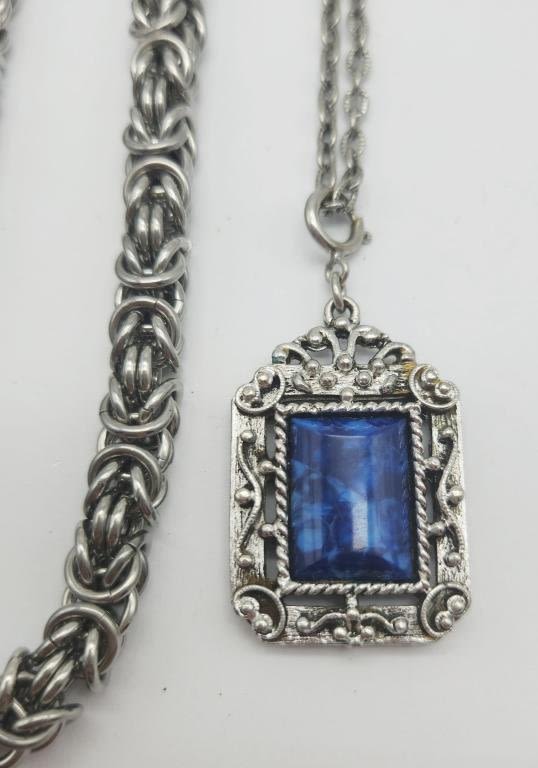 RECTANBLE PENDANT WITH NAVY MARBLE LUCITE CENTER (1)CHUNKY LINKED STYLES-COULD BE WORK AS A PAIR FOR A STATEMENT!
