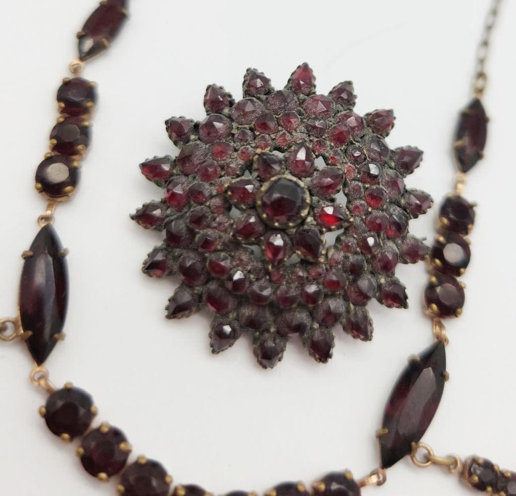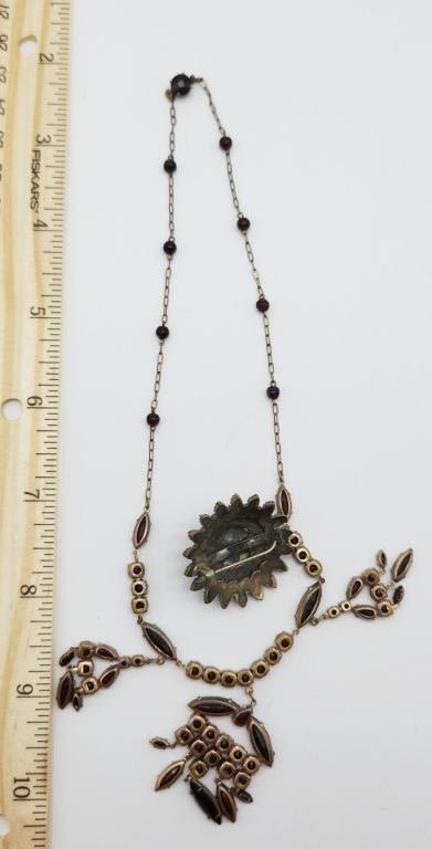 NECKLACE WITH BONUS DOME BROOCH WITH RUBY RED RHINESTONES