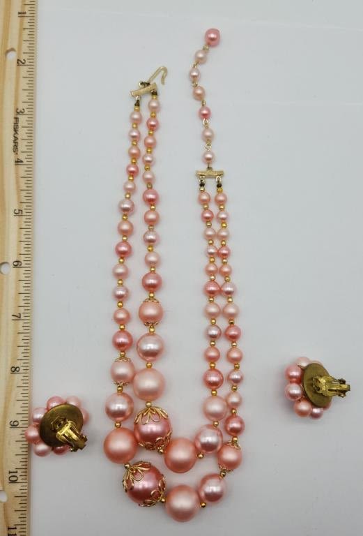 STRANDED NECKLACE WITH MATCH PAIR OF CLIP ON EARRINGS