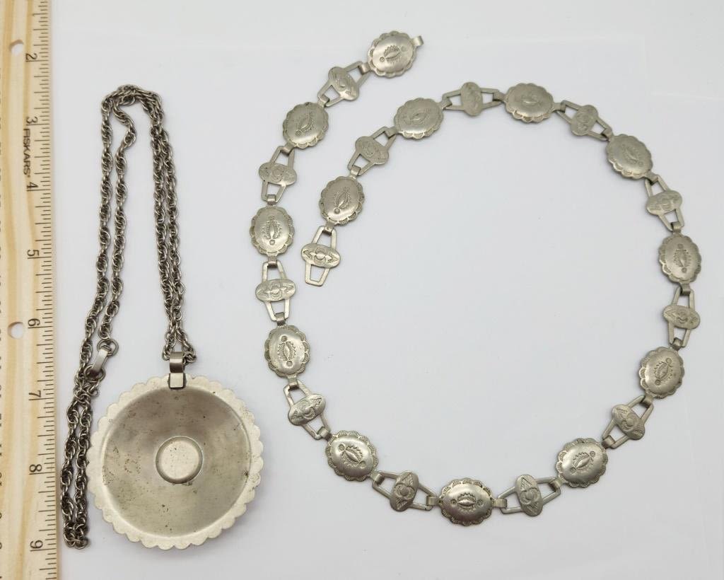 & (1)CIRCULAR PENDANT WITH TURQUOISE LUCITE CENTER