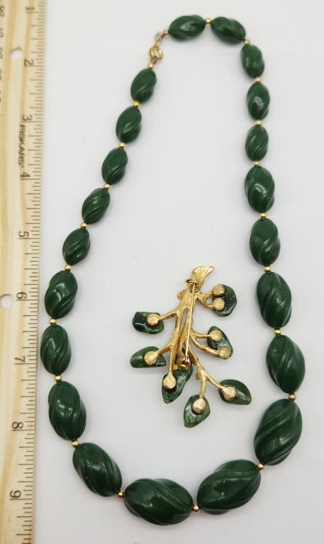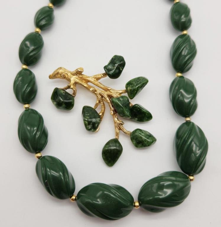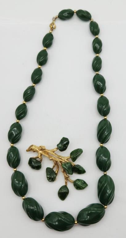 NECKLACE & (1)GOLD TONED TREE WITH GREEN POLISHED NATURAL STONES