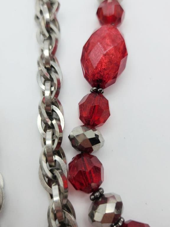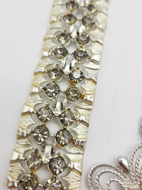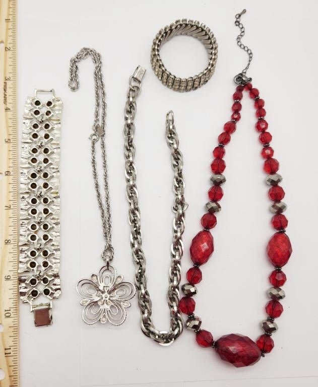 BRACELET (1)RHINESTONE PANEL BRACELET (1)MONET NECKLACE (1)CORO LINKED CHAIN/NECKLACE & (1)MAROON & BLACK BEADED NECKLACE