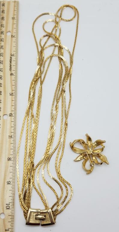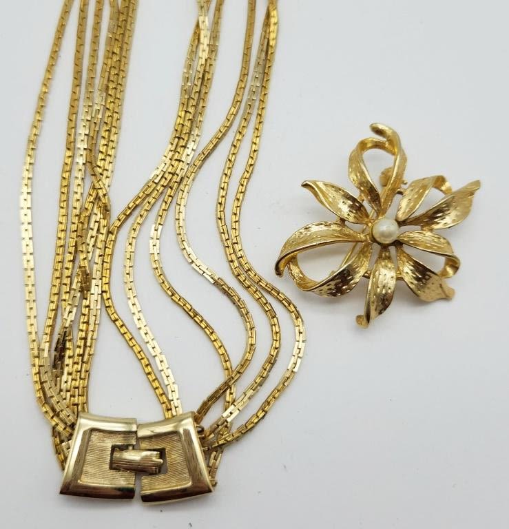 PLUS GOLD TONED FLOWER BROOCH WITH FAUX PEARL CENTER