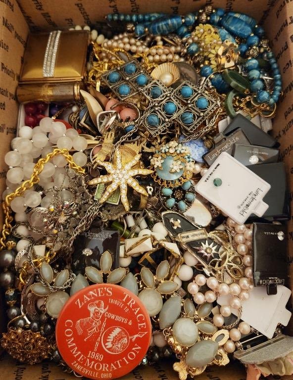 EACH LOT is UNIQUE! ABSOLUTELY A TREASURE HUNT – SOME PIECES MISSING STONES or NEEDING REPAIRED – GREAT FOR THE PINTEREST / CRAFT PERSON. MANY ITEMS NAMED – MEDIUM FLAT RATE BOX FULL (Shipping is MED. FLAT RATE COST)
