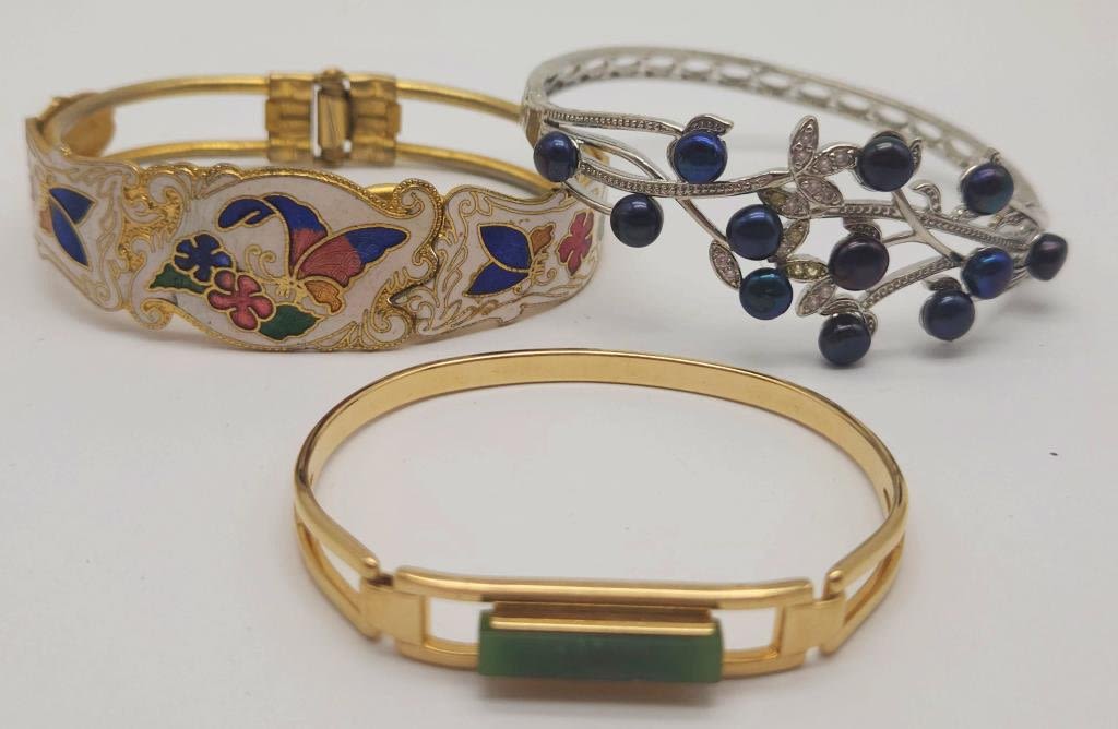 DESING-RHINESTONES WITH NAVY BEADS & (1)AVON WITH JADE CENTER